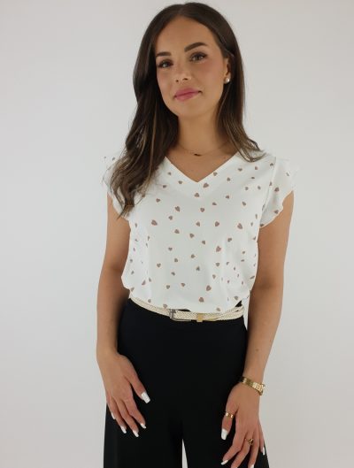 Elegancka Biała Bluzka z Nadrukiem Serduszek