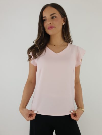 Elegancka Bluzka V-neck z Krótkim Rękawem – Pudrowy Róż