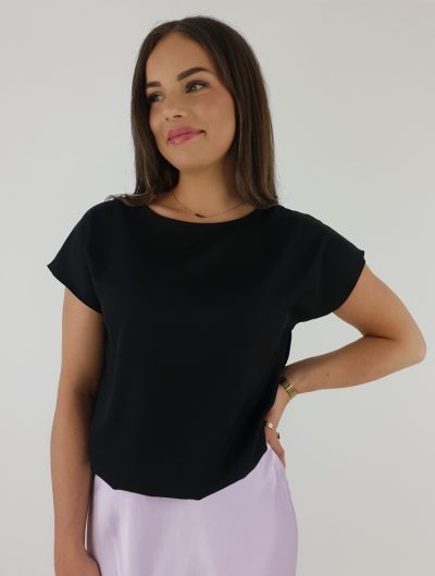 Elegancka Bluzka z Krótkim Rękawem i Ściągaczem – Czarna