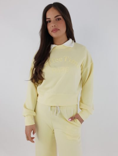 Komplet Dresowy Śmietankowy Masełko Paris – Krótka Bluza Z Kołnierzykiem I Spodnie