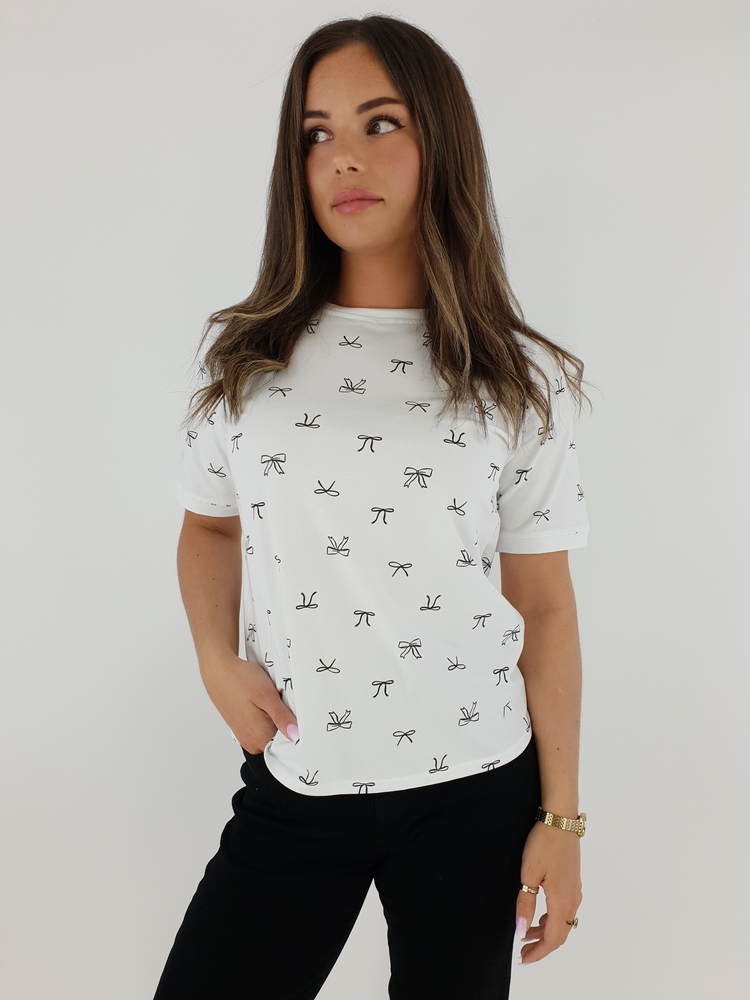 • Biały T-shirt Damski w Niebieskie Kokardki