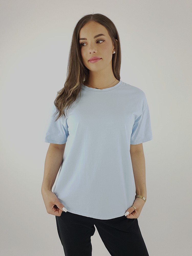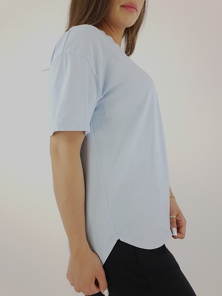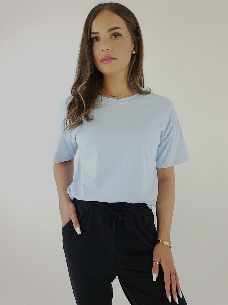 Błękitny Oversize T-shirt z Bawełny z Elastanem