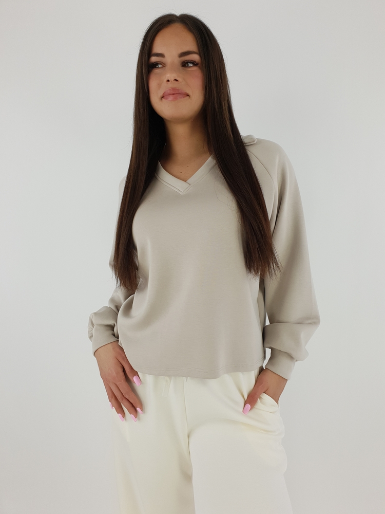 Bluza Masełko Z Kołnierzykiem Beżowa – Miękka Bluza