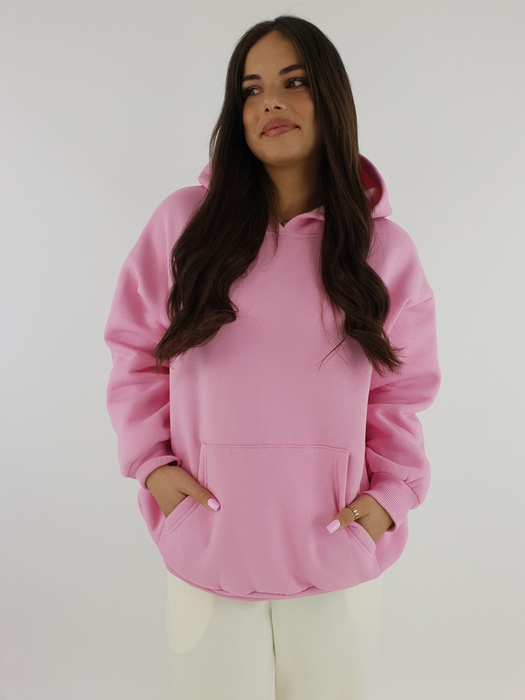 Bluza oversize damska 100% bawełna to połączenie wygody i modnego stylu. Model posiada kaptur, kieszeń kangurkę oraz ściągacze przy rękawach. Rozmiar uniwersalny pasuje na 36–42. Modelka ma 169 cm wzrostu i prezentuje rozmiar uniwersalny. Idealna bluza damska oversize do codziennych stylizacji, wykonana z naturalnej bawełny.