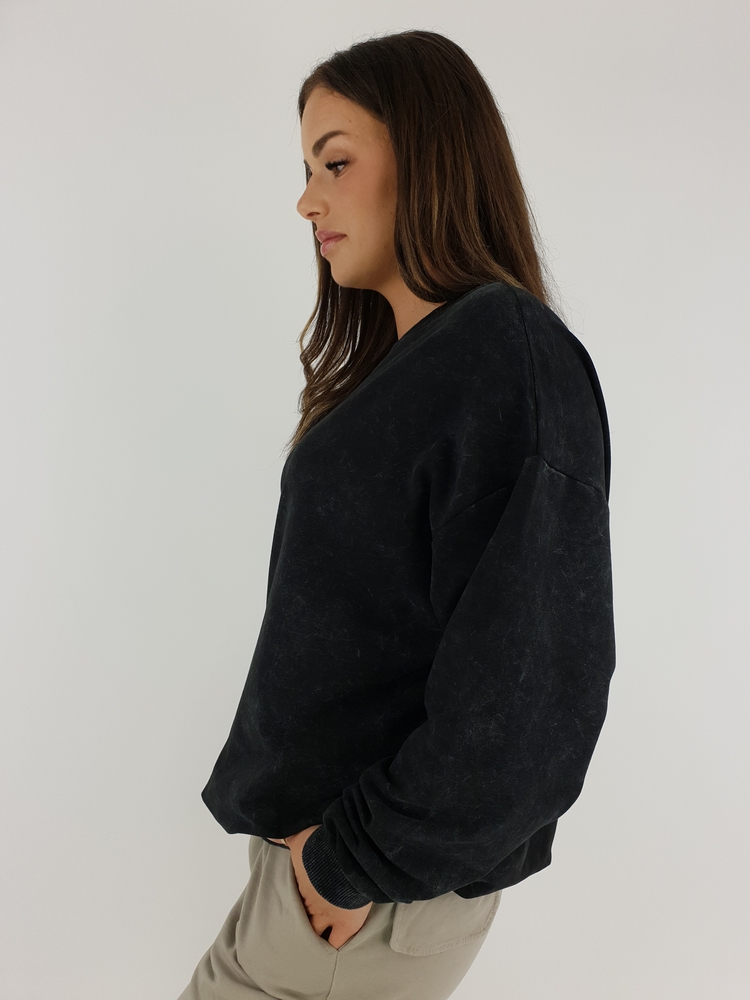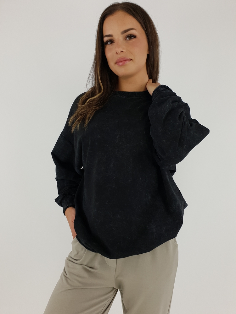 Dekatyzowana Bluza Oversize w Kolorze Czarnym