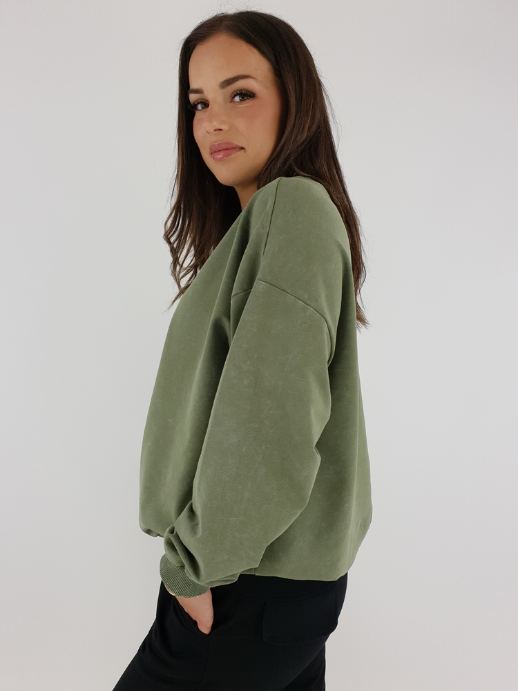 Dekatyzowana Bluza Oversize w Kolorze Khaki