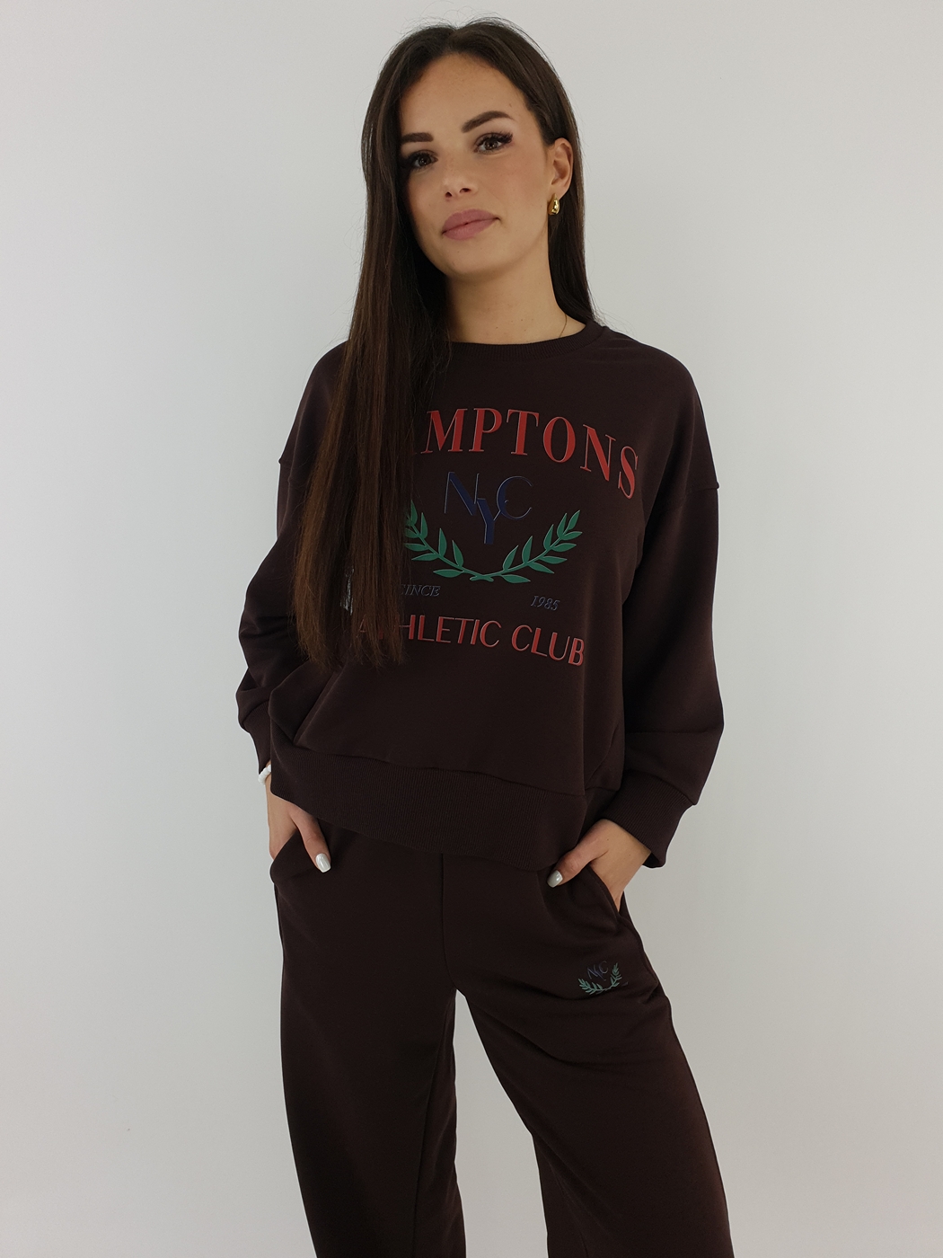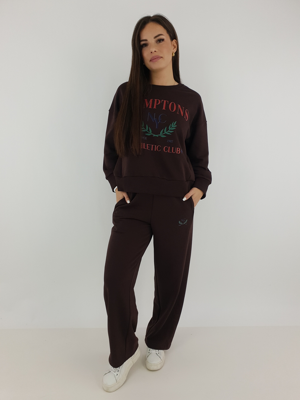 Komplet Dresowy Hamptons Z Prostą Nogawką Czekolada