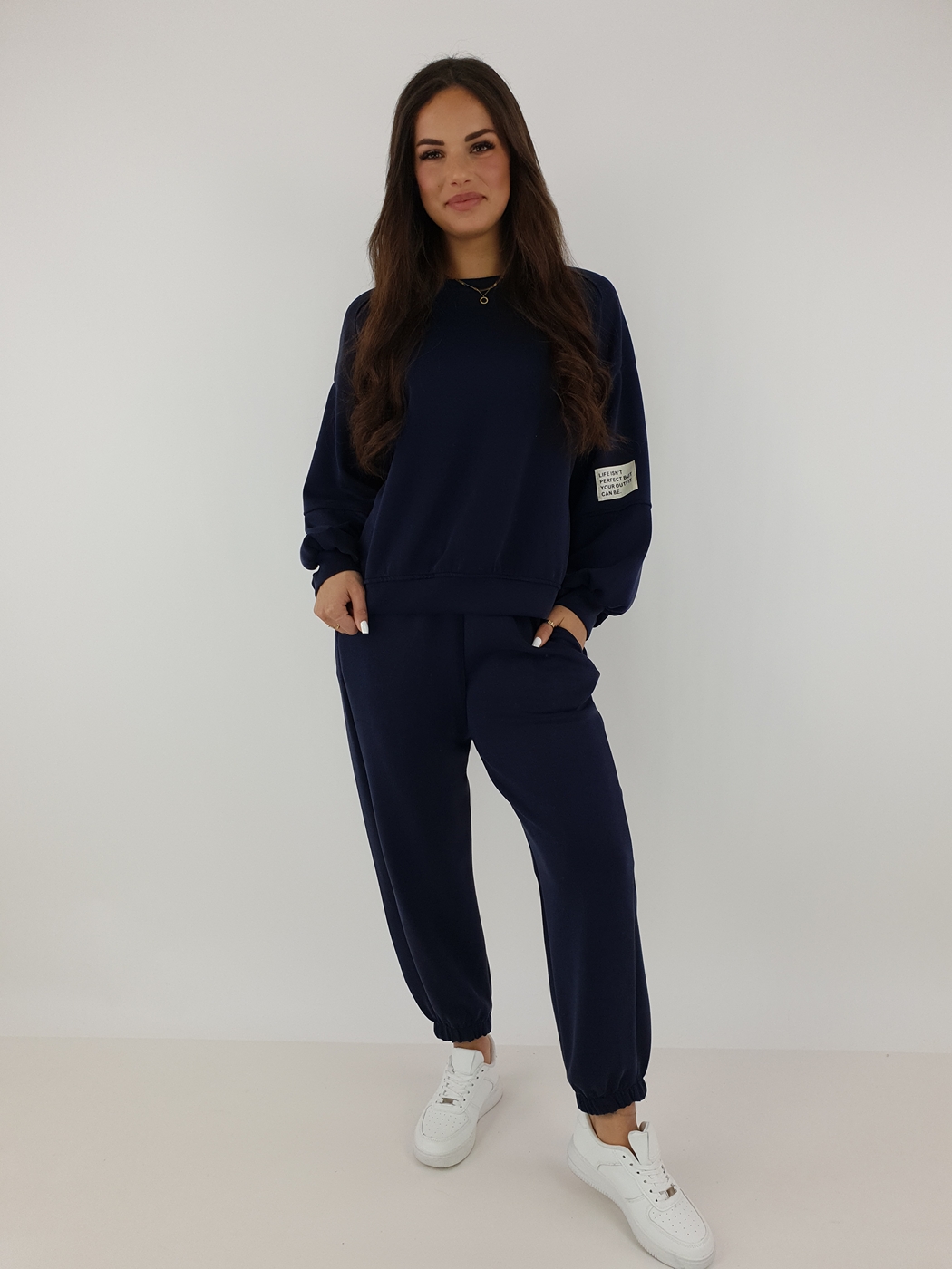 Komplet Dresowy Masełko Granatowy – Bluza Oversize i Spodnie