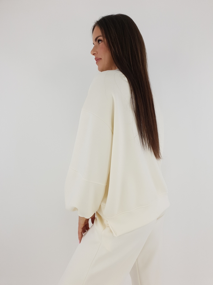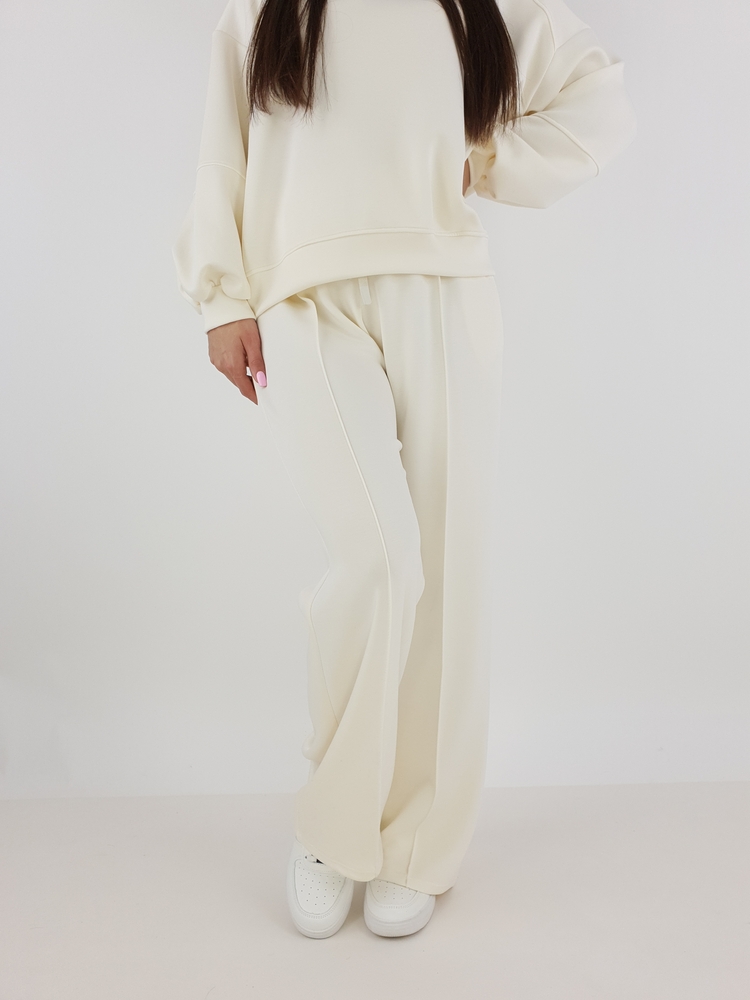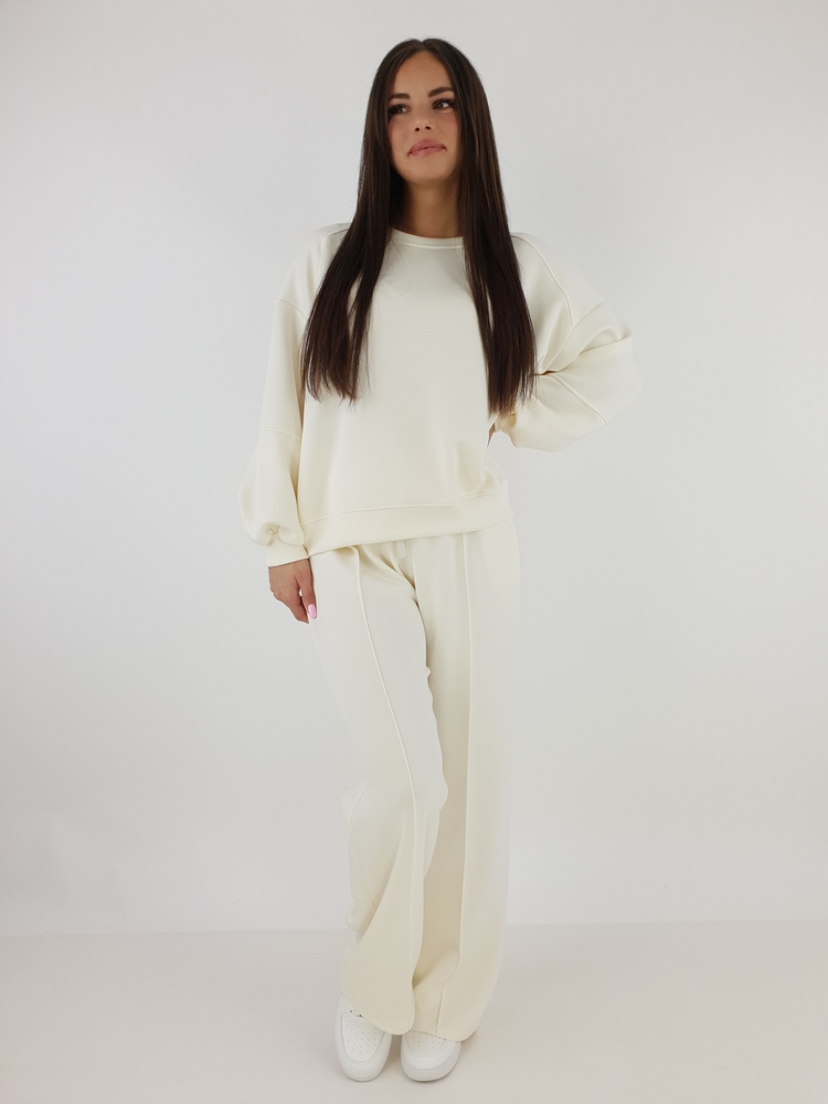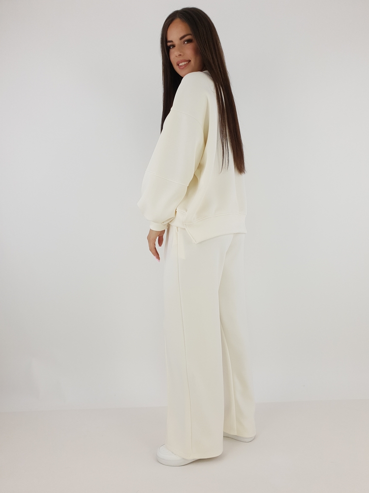 Komplet Dresowy Masełko Oversize Śmietanka –Bluza I Spodnie Z Szeroką Nogawką