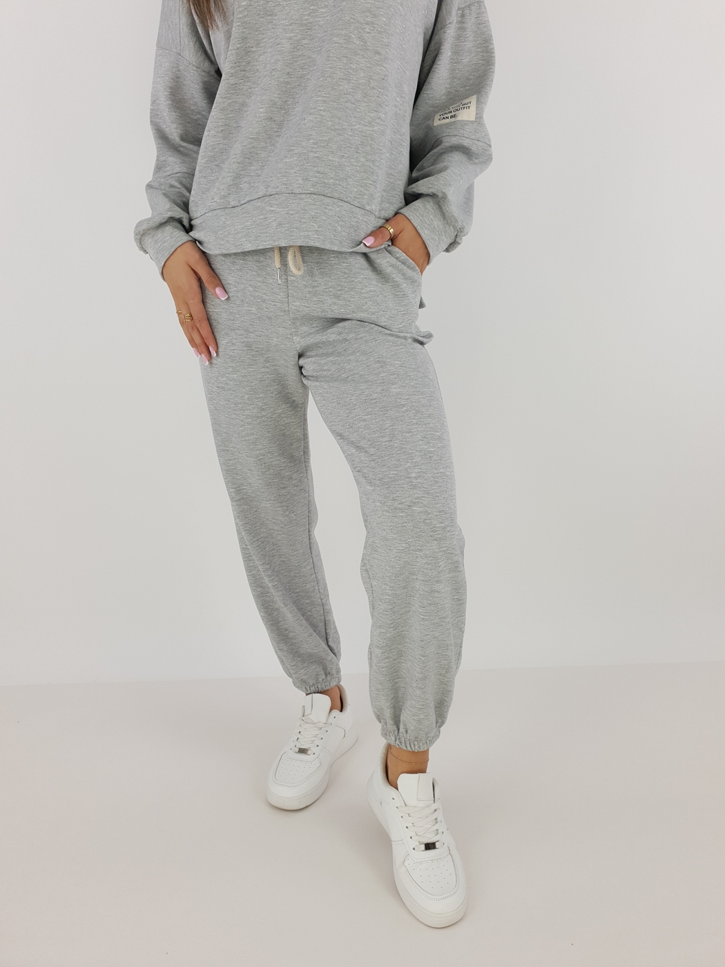 Spodnie Bawełniane Dresowe Szary Melanż Basic ze Ściągaczem