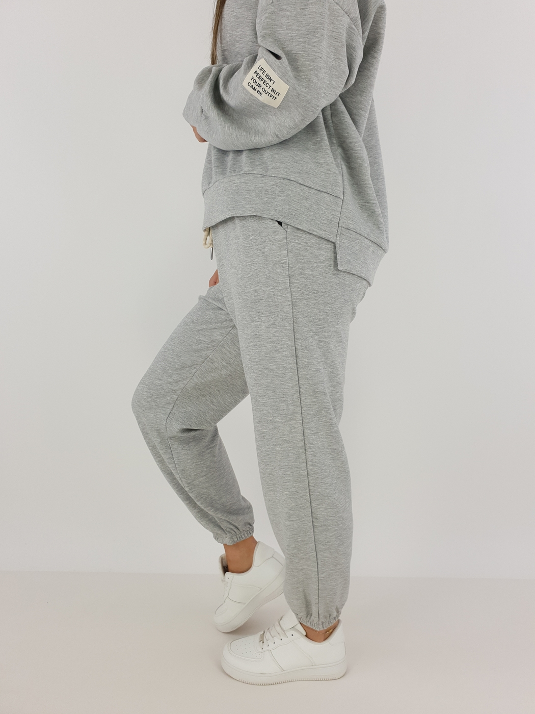 Miękka dzianina jest przyjemna w dotyku, dlatego spodnie świetnie sprawdzają się podczas całodziennego noszenia. Ponadto materiał delikatnie dopasowuje się do sylwetki, nie powodując uczucia dyskomfortu. To sprawia, że model idealnie nadaje się na spacer, podróż czy relaks w domu.